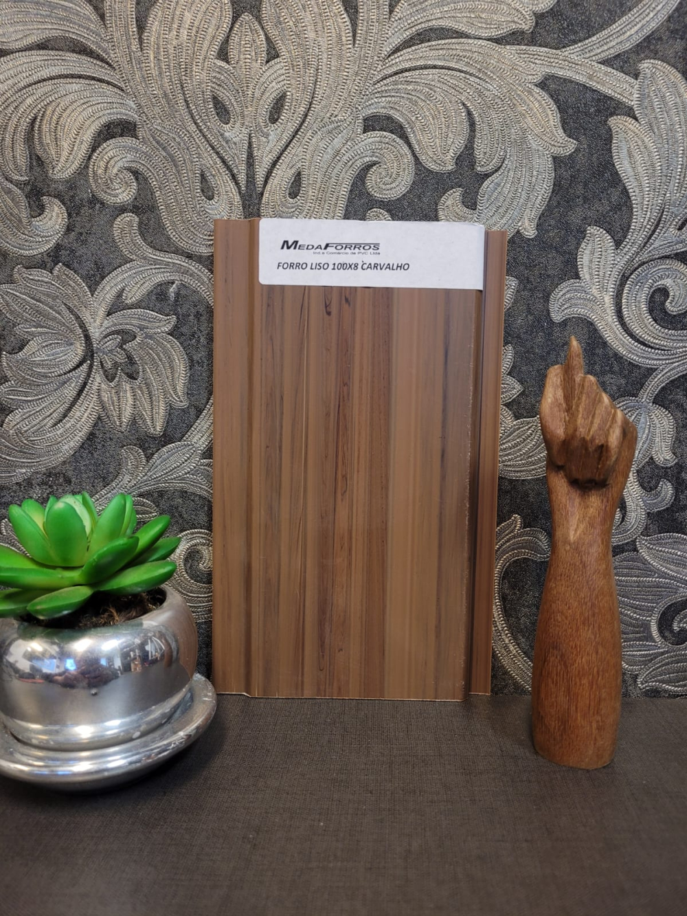 Escolher um forro PVC de tonalidade carvalho oferece um visual elegante e clássico, combina bem com diversas decorações, cria um ambiente acolhedor e disfarça melhor imperfeições, além de manter a cor ao longo do tempo.